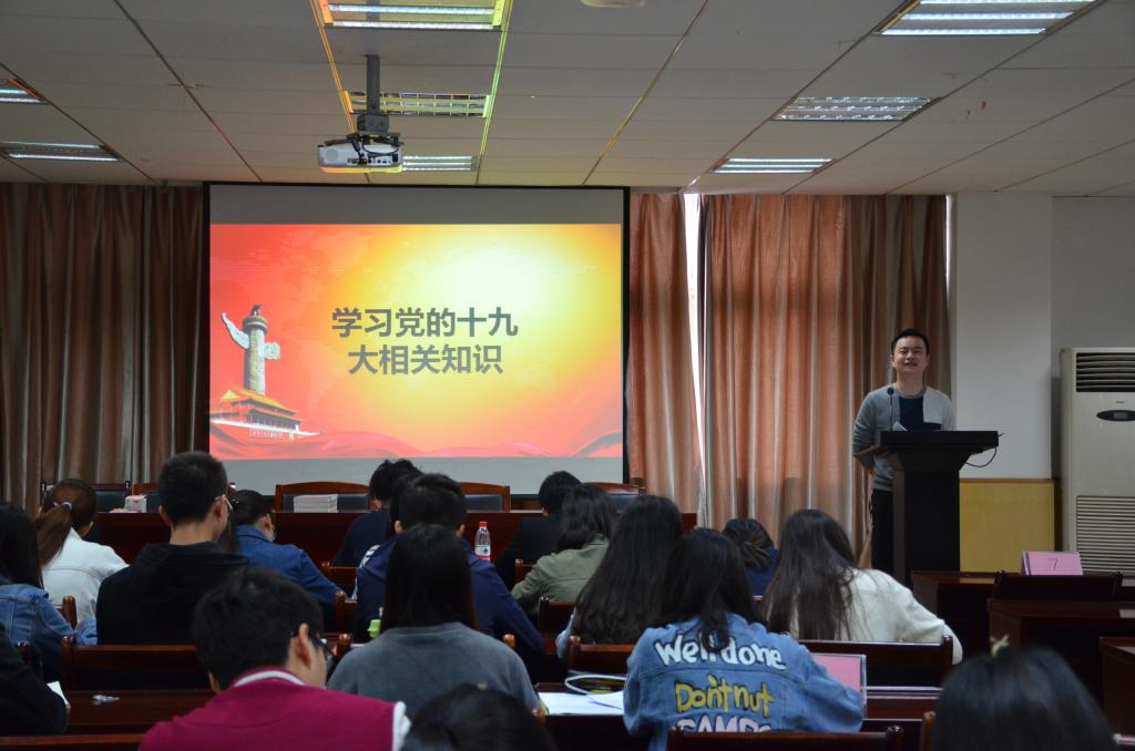 数统学院团委将习近平总书记在党的十九大的重要讲话整理成册,并发放到每个参与人员手中。全体成员左胸口都佩戴着团徽,交流会伊始,全体起立齐奏团歌,集体观看党的十九大相关视频并学习相关理论知识。团委老师周杰总结了党的十九大开幕会习近平总书记讲话内容,将其概括为“成就”和“变革”,并分享看完党章的启发,告诉学生要学习习近平总书记知青时期的精神,身先士卒,树立榜样。