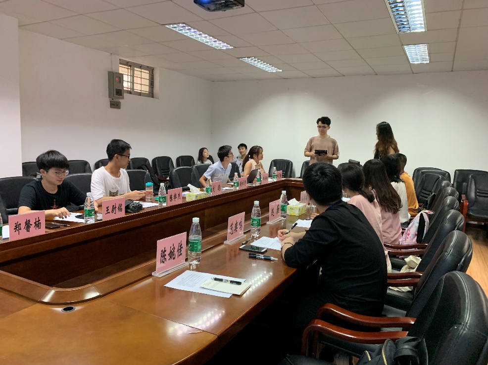 上午8:00小组人员从酒店出发前往华南师范大学。经前期安排在数学科学学院进行此次学习,接待同学带领调研小组去到会议室开展交流活动。此次调研小组与华南师范大学数学科学学院指导老师、学生会主席以及各分管修主席进行了为时两个小时的交流学习,其中就学生活动、学风建设和组织建设等方面进行相互学习,并以智慧课堂建设、智慧教学工具使用等与调研主题相关的内容进行了一番了解,交流过程中,双方同学交谈融洽,在轻松的氛围下获得了很多有价值的启发。交流结束后,双方同学互换礼品并在学院前方合照,数学科学学院主席热情带领调研小组去到饭堂就餐,最后送走调研小组,双方建立了良好的友谊。