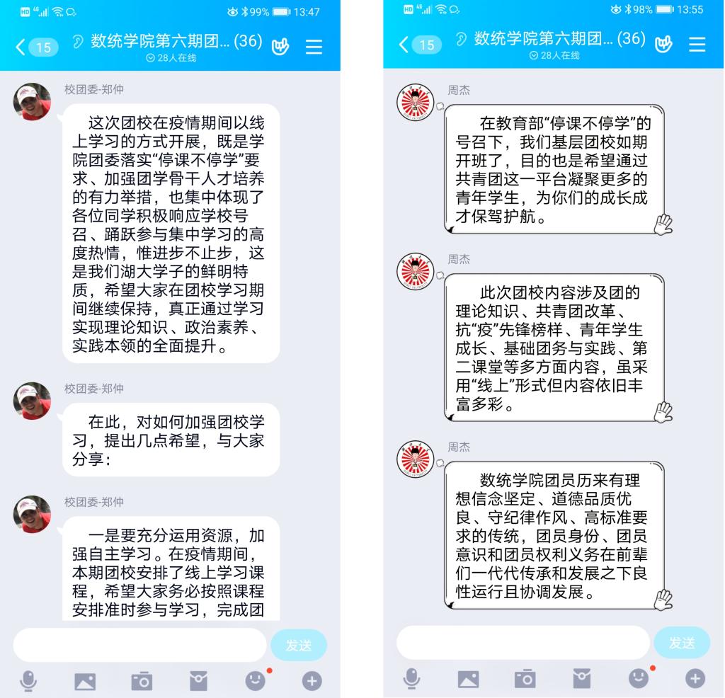 受疫情影响,本次开班仪式以QQ群线上图文交流的方式进行,数统学院31名团校学员准时参加。同时,yL23411永利集团团委副书记郑仲、数统学院党委副书记陆伟、数统学院团委书记周杰出席开班仪式,仪式由院团委组织部陈溢纯主持。