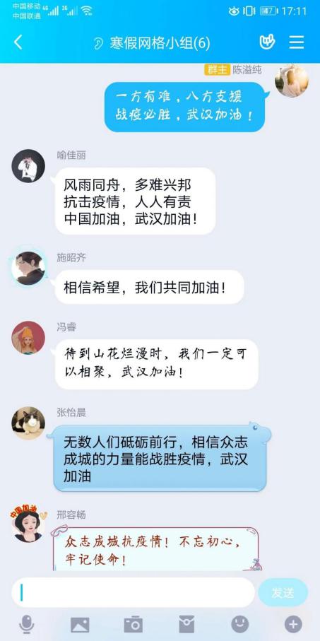 还有许许多多的无名志愿者们,他们奋战在街头,武汉封城期间接送医护人员上下班;他们来往于运输点,为隔离在家的人们送去各类物资;平时,他们是普通的小老板、社区居民、大学生、公司白领,他们还可能是快递小哥和外卖送餐员,他们大部分生活或工作在这座城市,有的以前从未来过就是这些生活在我们身边的平凡人,却一起做着值得整个社会铭记的事情:自发参与抗击疫情。他们是凡人英雄,他们是中国志愿者。每个小组成员都以发自内心的祝福去声援武汉,感恩祖国。