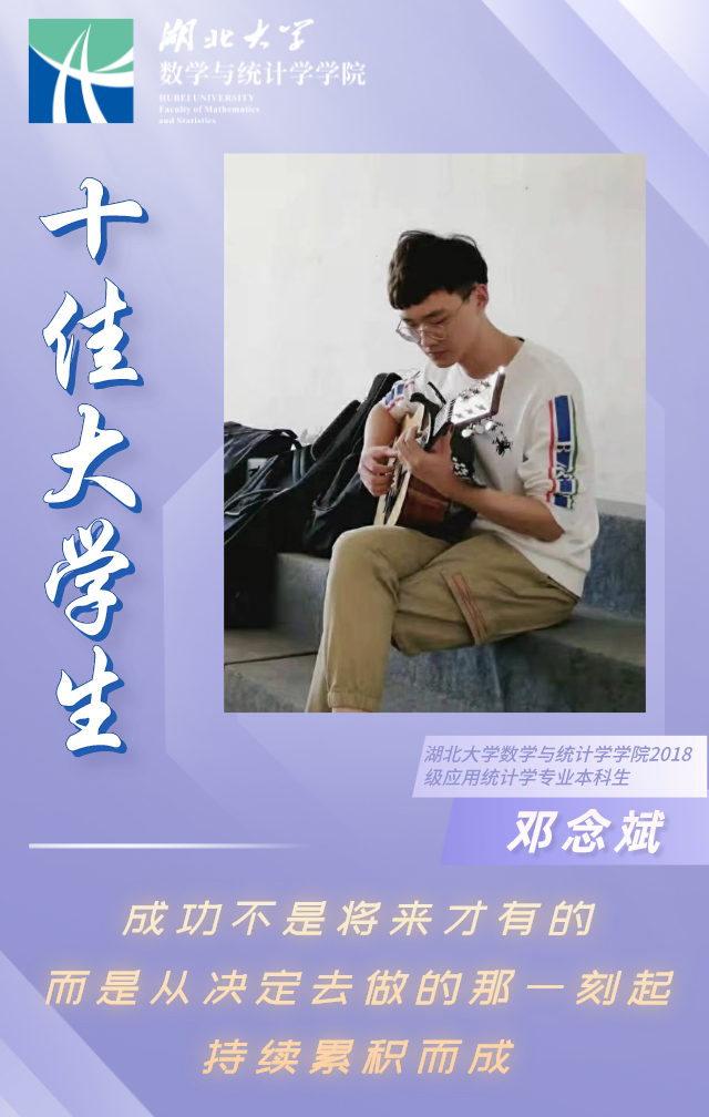2020年5月带队我参加“泰迪杯”数据挖掘挑战赛,获得了湖北省二等奖成绩。暑假期间参加数模国赛培训班;在数学建模国赛中获得湖北省二等奖成绩;2021年4月获美国大学生数学建模竞赛三等奖;在“正大杯”市场调查大赛拿到国家一等奖成绩;曾主持省级大学生创新训练项目——“‘疫情’背景下MOOC平台现状分析及前景研究”。现在成功保送至中南财经政法大学攻读应用统计学(大数据分析)硕士学位。