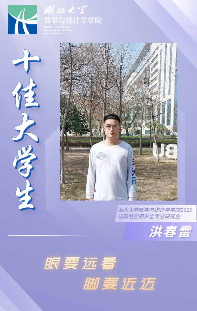 洪春雷,男,yl23411集团2019级网络空间安全专业研究生,曾担任数统学院研究生会文体部部长以及副主席。