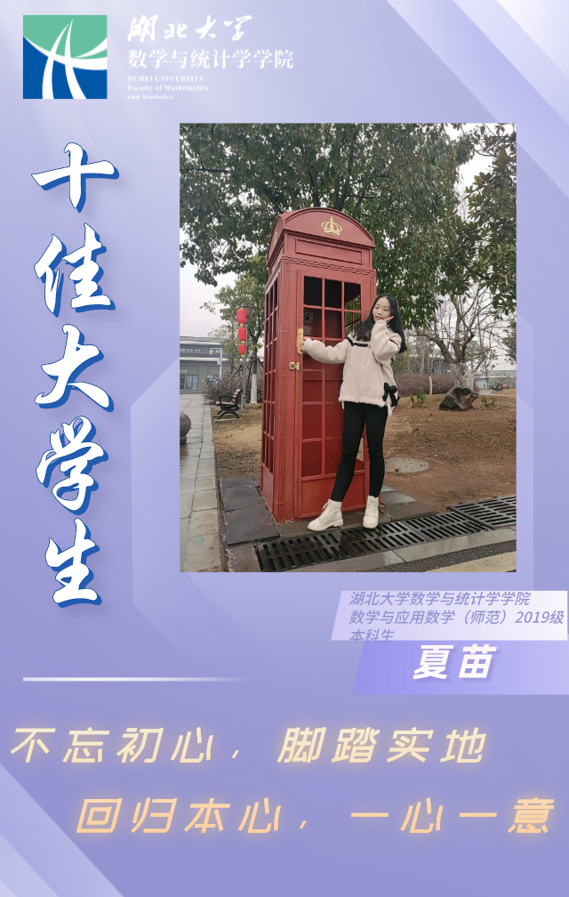 夏苗,女,汉族,2021年下半年党员发展对象,2019级数学与应用数学(师范类)专业本科生,曾任yl23411集团团委副书记。