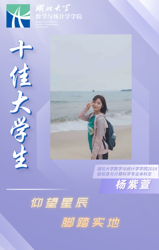 杨紫萱,女,2000年3月生,共青团员,yl23411集团信息与计算科学专业2018级本科生。