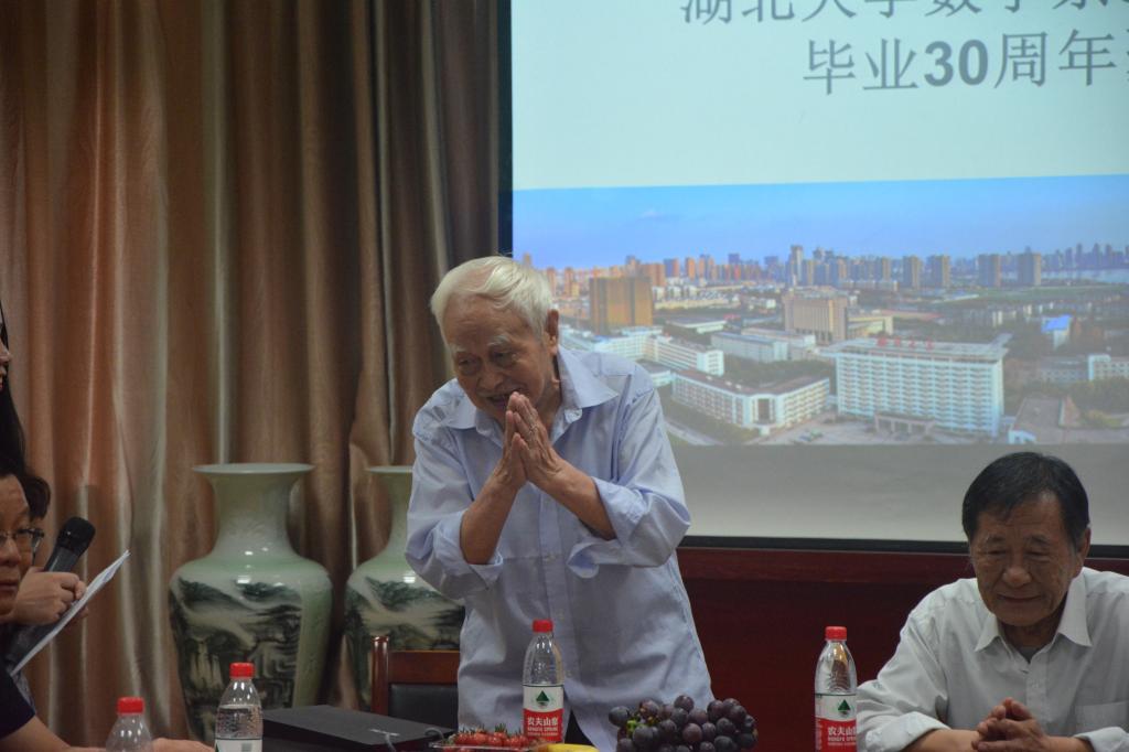 交流会上,教师代表也纷纷发言,与校友们一同回忆他们的大学生涯,回味美好的青葱岁月,感慨时光匆匆,对大学生活无限怀恋。特别是九十二岁高龄的崔运昌老师也亲临现场,与校友们一同庆祝毕业30周年。师生们回忆、讲述共同经历的青春往事,欢笑与感动一时间充盈在每个人的心尖。