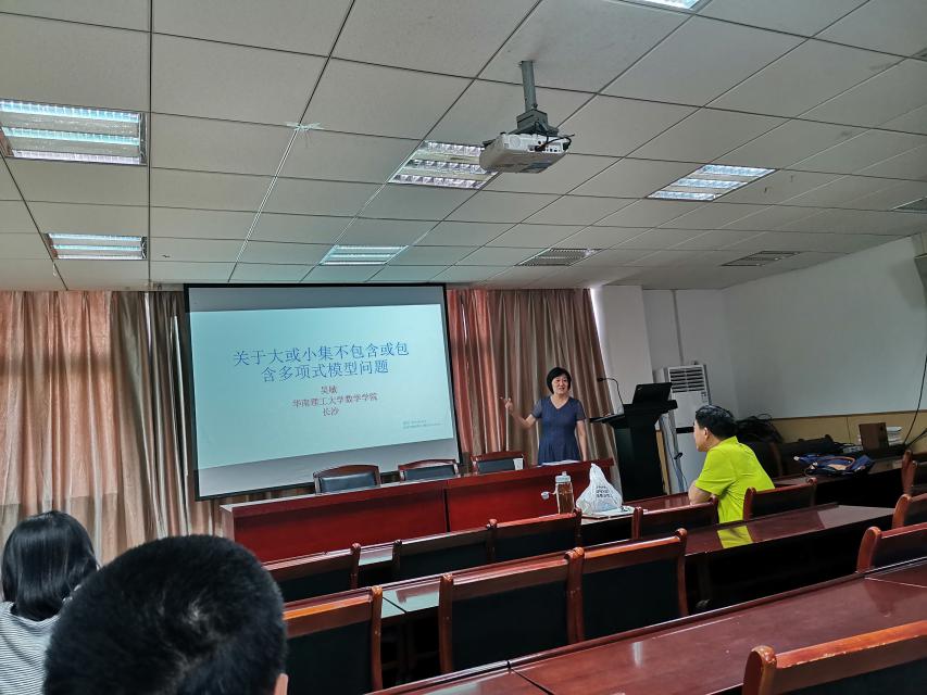 下午16:00-17:00,吴敏教授又做了题为关于大或小集合不包含或包含多项式模型问题的学术报告。报告中,吴敏教授谈到了小包含的特殊情况,大不包含,集合包含或不包含算数序列等相关问题。其精彩的内容引起了在场师生的极大兴趣。
