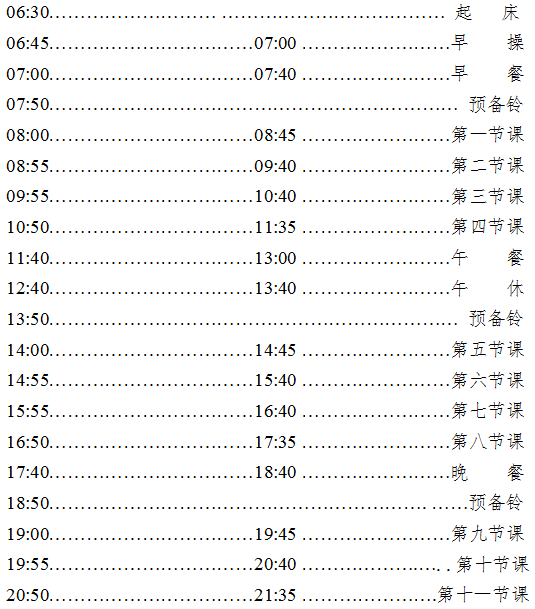 附件:yL23411永利集团校本部作息时间安排(2019年10月8日起执行)