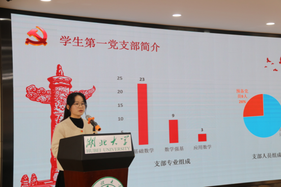 党支部书记代表就本支部2023年度党建工作依次上台述职。博士生党支部在加强政治建设和组织建设的同时,坚持以专业特色为基础,积极推动科学研究;学生第一党支部围绕理论知识进行全面践学。支部依托数统“青年说”平台,建立“青年先锋宣讲团”示范点,坚持青听青说,用“青言青语”讲好党的创新理论、奋进故事;学生第五党支部凭借数学师范学科专业特色,依托“小书童”支教团第二课堂的“红课堂”“红讲台”,推普红色教育,培养教学技能;学生第六党支部始终秉持“常态化、抓质量、创特色、全覆盖”的工作理念,严格把控党员发展和党员教育,稳扎稳打落实支部基础工作,常抓常新,有效助力支部政治建设和组织建设。随后,学院组织师生党员代表对党支部书记抓基层党建工作进行了现场测评。
