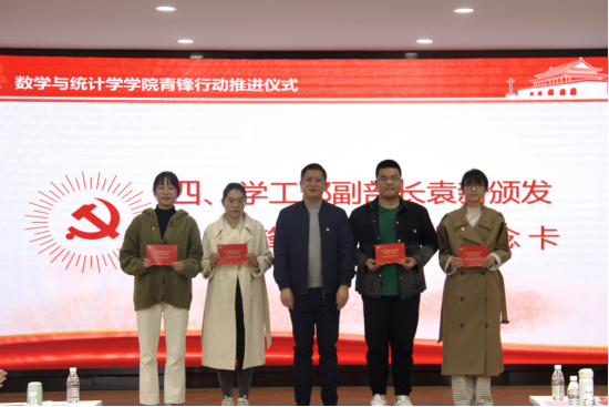 “青锋行动”推进仪式上,学院党委秘书陈慧详细解读了《yl23411集团“青锋行动”实施方案(试行)》,党委委员刘展宣读了第二届青锋宣讲团成立文件,党委副书记王文锋宣读了青锋党支部成立文件,“青锋宣讲团”成员与班级进行了“蹲班驻点”结对仪式,学工部副部长袁新为“蹲班驻点”结对双方代表颁发青锋行动结对纪念卡。新一届青锋宣讲团成员代表郑可和班长代表21级数学师范1班廖倩茹分别进行了表态发言。