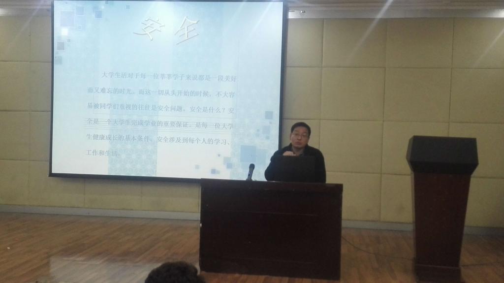 3月30日下午,校保卫处副处长祝逸明为我院学生做了一场关于校园安全的专题讲座,院党委副书记陆伟主持了讲座。