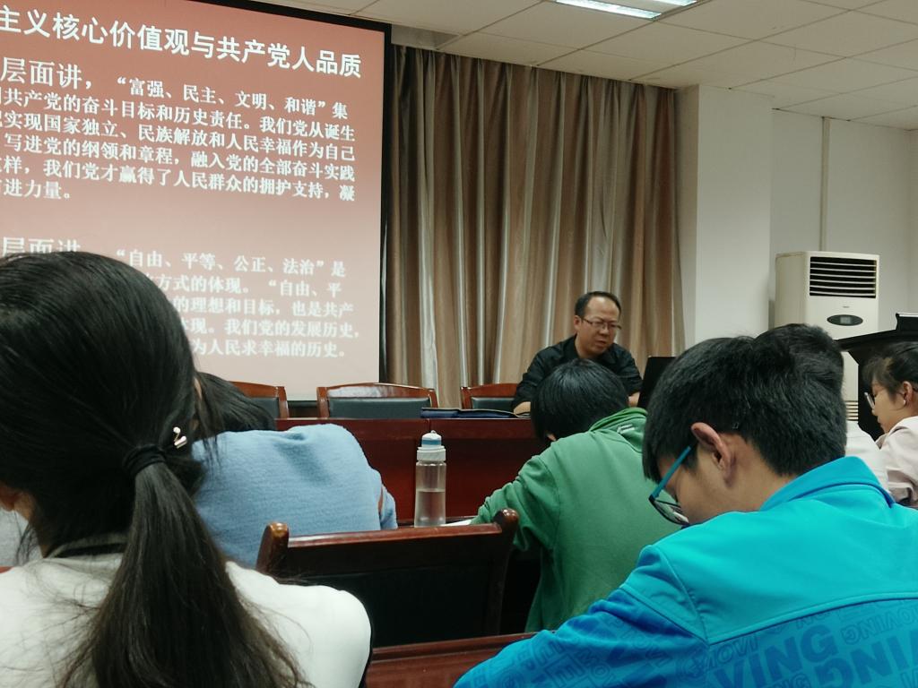 陈部长以两个问题作为开头“我们为什么入党”“什么叫真正意义上的入党”,引发在座各位同学的深思,并为同学们带来了深刻而富有激情的宣讲,大大增强了学生对社会主义核心价值观与共产党人品质的了解。