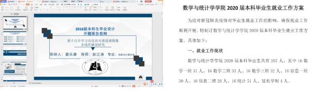 为应对疫情对毕业生的影响,学院提早谋划、全面部署,通过线上形式组织毕业生完成毕业论文,保证答辩如期进行。出台2020届毕业生就业工作方案,开展就业信息统计,动员校内外多种资源,实施就业补贴和奖励,精准帮扶重点学生,确保毕业生顺利就业。