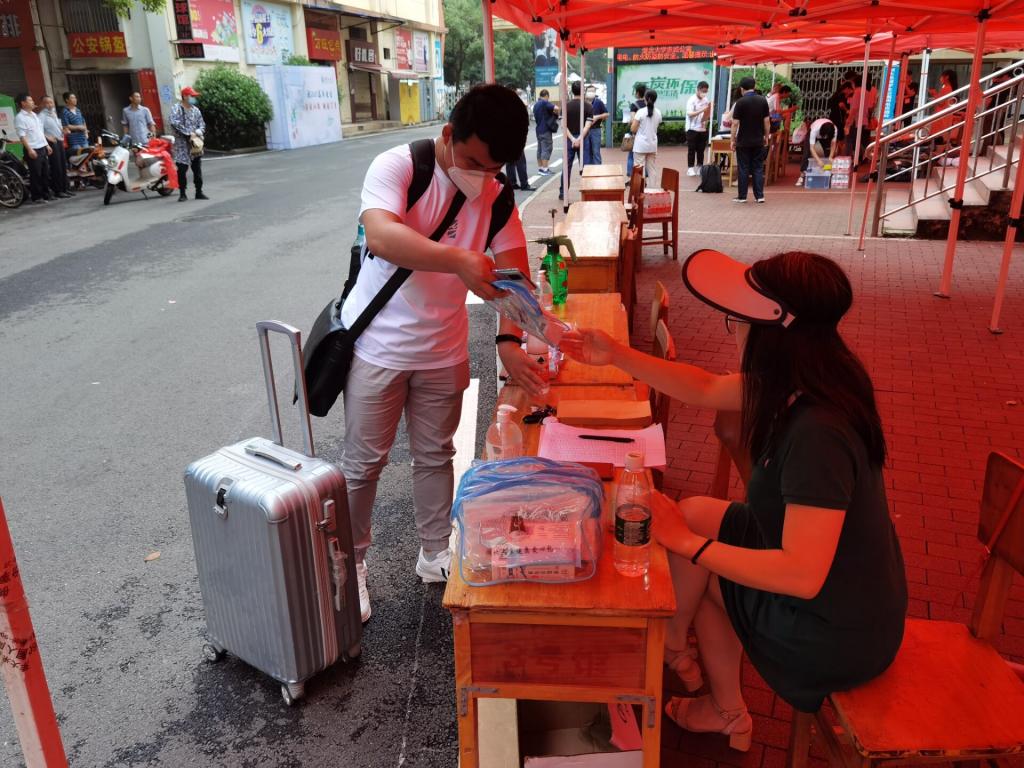 15日清晨,数统学院党委副书记陆伟到达三期公寓参与协调工作,迎接返校学子。辅导员马荣在学生宿舍楼下搭建服务点,将防疫健康包、饮用水等物资陆续搬运到服务点,准备迎接返校学生。到校毕业生第一时间到学院服务点进行报到,辅导员为学生发送防疫健康包、毕业餐券,收取学生报销材料,提醒学生相关手续的办理。学生在办完还书、缴费、行李托运、退宿等手续之后,到辅导员周杰老师处领取相关毕业证件,实现毕业离校手续一站式办理。
