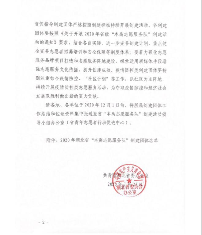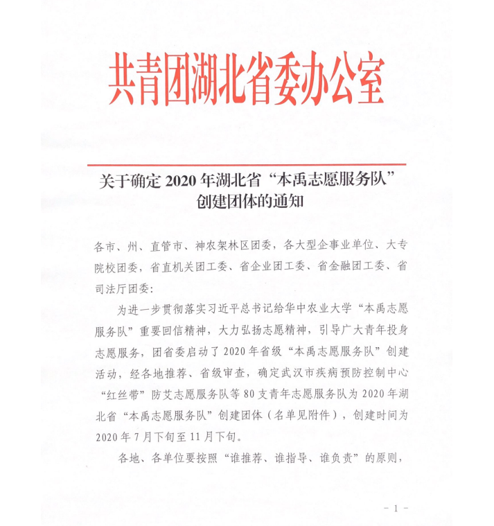 为进一步贯彻落实习近平总书记给华中农业大学“本禹志愿服务队”重要回信精神,大力弘扬志愿精神,引导广大青年投身志愿服务,团省委启动了2020年省级“本禹志愿服务队”创建活动。经团队申报、学校推荐、省级审查,我院“小书童”支教团入围为2020年湖北省“本禹志愿服务队”。