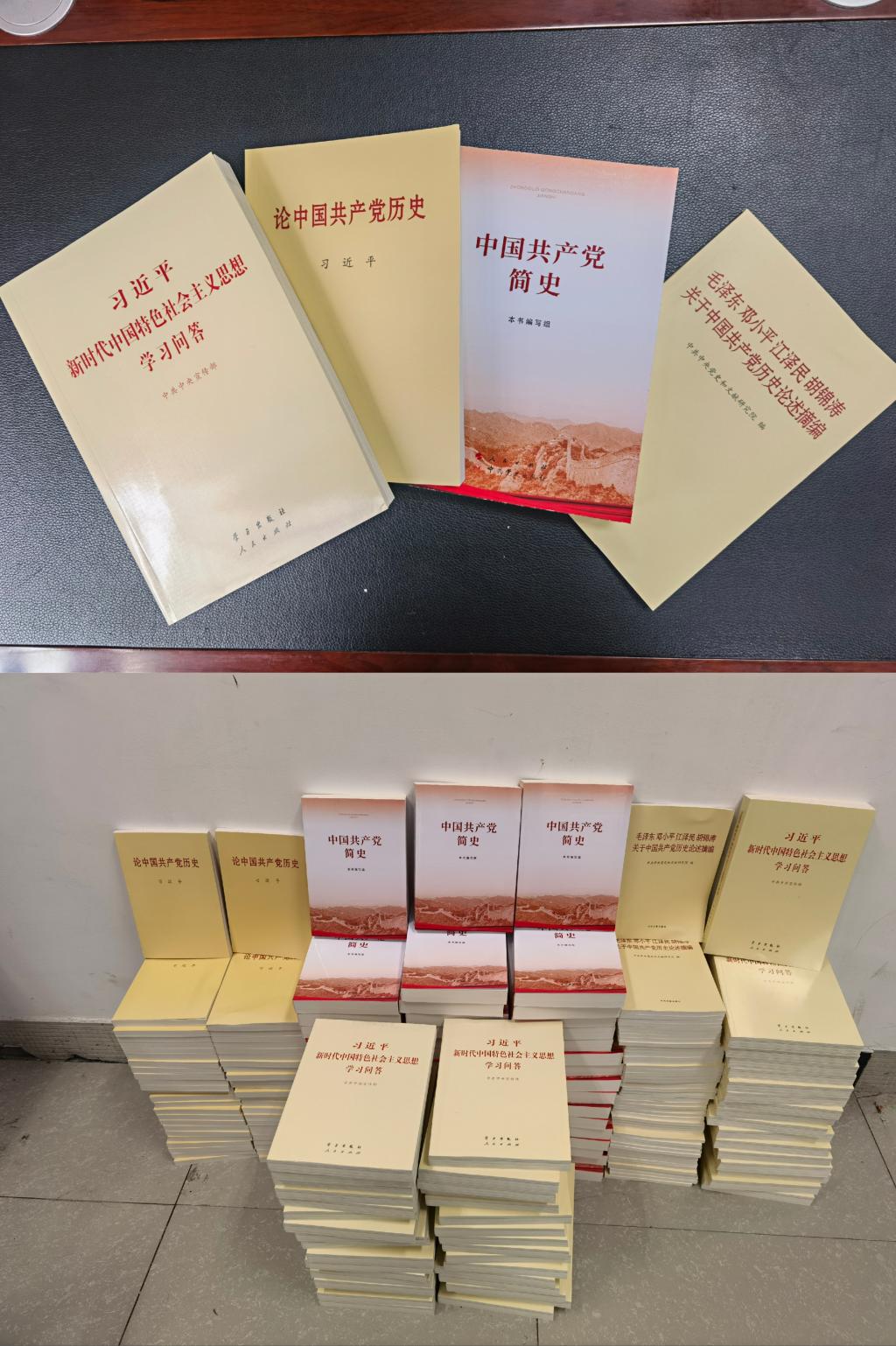 学院党委征订的学习资料包含《中国共产党简史》《论中国共产党历史》《毛泽东 邓小平 江泽民 胡锦涛关于中国共产党历史论述摘编》和《习近平新时代中国特色社会主义思想学习问答》四部书籍,集中体现了中国共产党不断推进理论创新、进行理论创造的历史,是马克思主义中国化的进程。