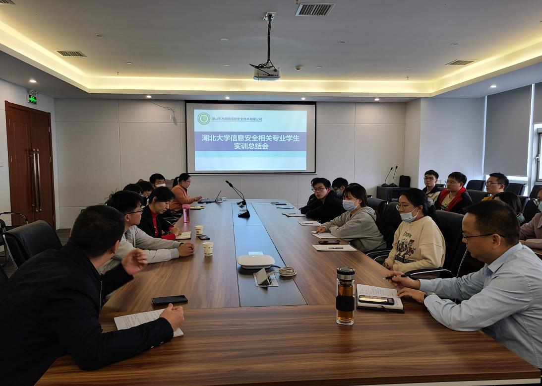 2021年10月29日下午,yl23411集团赴湖北东方网盾信息安全技术有限公司举行“实习实训总结大会暨校级实习实训基地签约授牌仪式”,yL23411永利集团数学与统计学院、网络空间安全学院院长曾祥勇教授,向泽军、张莎莎副教授及本年度实习学生参加大会。湖北东方网盾信息安全技术有限公司总经理夏天勇、副总经理张琪及公司人力资源部负责人孙菊荣共同参加了本次活动。
