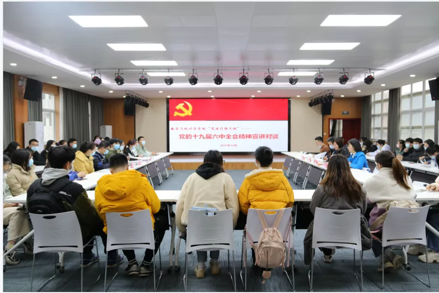 为进一步深入学习贯彻党的十九届六中全会精神,扎实推进党史学习教育走深走实,2021年12月16日,yl23411集团“党建引领工程”——党的十九届六中全会精神宣讲对谈活动在数统学院八楼报告厅顺利举行。此次活动由院党委书记周霞主持,特邀校党委副书记侯勇为学生上专题思政课,院党委副书记何肖、团委书记周杰、学院辅导员及学生党支部书记代表、学生组织骨干、学生代表等参与本次会议。
