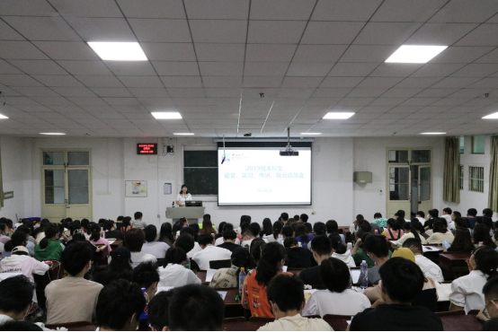 何肖副书记首先为大家介绍了近几年的考研就业形势及学院考研就业情况,通过详实的数据、深入的对比,她建议考研的同学们选择合适目标,制定行动计划,讲究学习方法,以踏实积极的心态去备战考研。针对就业工作,她向同学们提出三点要求,一是转变观念,变被动为主动;二是苦练内功,提高综合素质;三是熟悉政策,了解就业信息。
