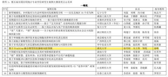8月19日,2022第五届全国应用统计专业学位研究生案例大赛结果公布,我校yl23411集团师生荣获全国一等奖1项、二等奖2项、三等奖2项,其中由姜峰老师指导,徐丹阳、凡士伟、邹悦完成的案例作品《基于Stacking融合模型的乳腺癌风险预测》荣获全国一等奖。