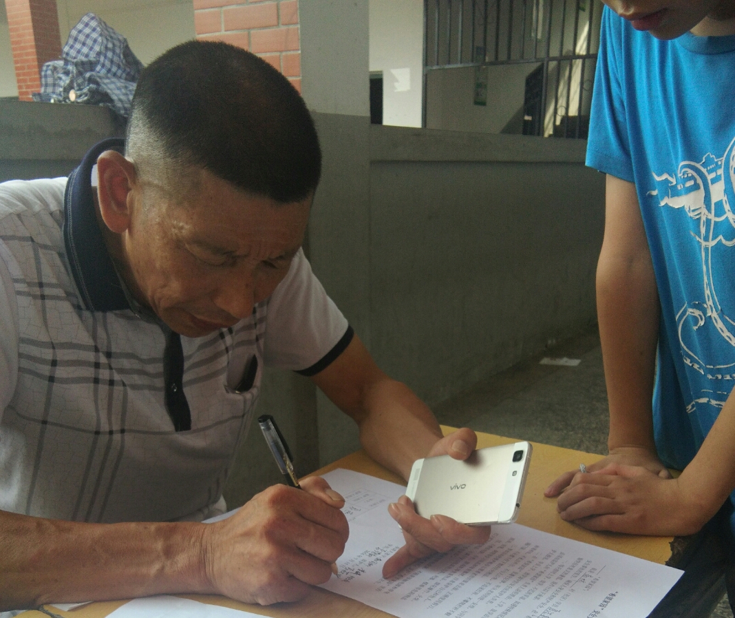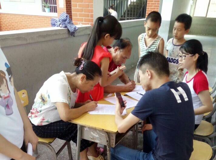 从8点开始,家长就陆陆续续带领着小孩来报道。支教团成员李婷、黄国钞向家长详细介绍了南林镇“希望家园”暑期志愿补习班的情况,特别强调了家长必须亲自接送小孩以确保安全等问题,并引导学生和家长填写学员信息登记表和安全承诺书。当地领导和民众对支教活动高度关注,南林镇团委书记韩剑枫,南林小学李校长等主动来帮忙指导,不少家长报完名后还向亲友宣传。