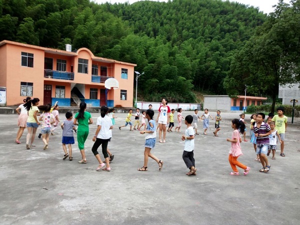 经过一上午疲惫的授课,下午是由支教团的周峰同学为大家带来的历史课——“贾”姓的由来。由于这个村子叫做贾家源村,绝大多数孩子都姓贾,因为特意准备了一堂“贾”姓由来的课,使学生们可以追根溯源。最后两堂课是体育课,由支教团的刘平平和胡思梦带着孩子们做游戏,从泡泡糖玩到萝卜蹲,每个孩子的脸上都露出了开心的笑容,是那样的单纯可爱。
