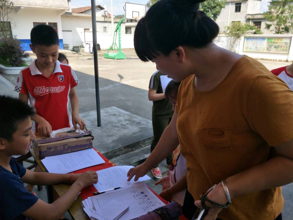 早上六点半,学生和家长就开始陆陆续续地前来报名,马桥小学五年级学生程浩积极地帮助支教团成员进行招生登记,支教团成员笑称他为“招生总代理”。面对学生和家长的疑问,志愿者们耐心地为他们解答。虽然天气炎热,支教团成员的衣服也被汗水打湿,但他们对待志愿支教活动的热情反而愈加高涨。本次“小书童”志愿支教活动面向一至九年级的在校学生招生,学生多,年级跨度大,如何进行高效教学对支教团成员来说是一个挑战。