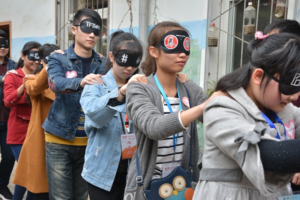 分享伊始,迎接大家的是一个“模拟盲人”的游戏,数统学院的徐页纯和黄瑜梅参与到了这个游戏中。在随着众位游戏参与者沿着盲区走了一圈后,徐页纯说:“戴上眼罩的那一刻,我感觉进入了截然不同的世界,内心的勇气被黑暗所替代,挪着小碎步摸索着向前,每进一步都热切渴望能抓到一个可以使我依靠的物体,或是能有人搀扶我一把。”黄瑜梅则表示,通过这次游戏,她深切的体味到作为一个盲人生活是多么的不方便,希望更多的人能参与到志愿服务中,让更多的残疾人士回归正常的生活。