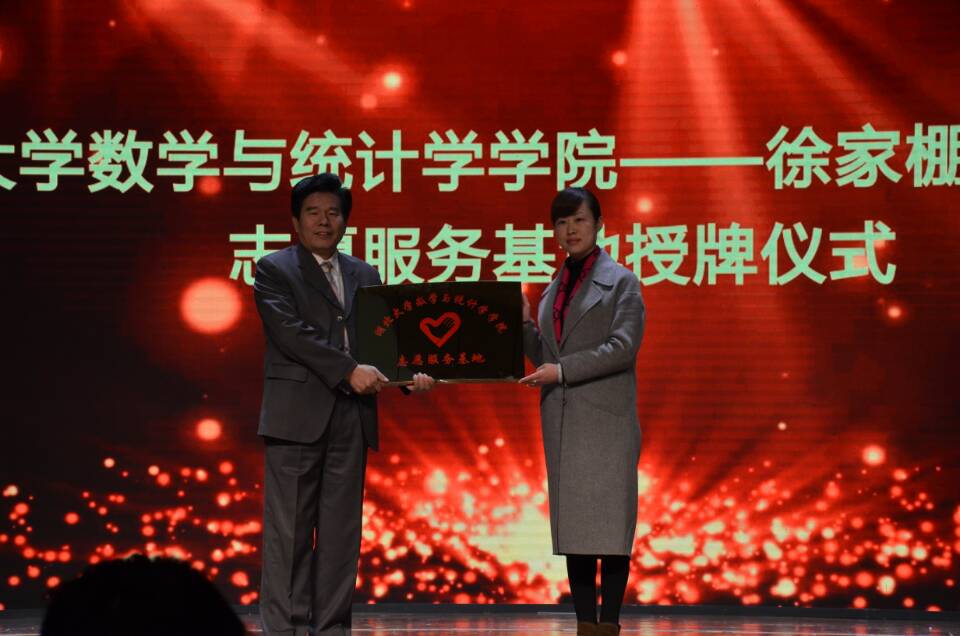 12月18日,徐家棚阳光家园园长刘慧出席我院2017年的元旦晚会,在晚会现场,举行了数统学院与徐家棚阳光家园授牌仪式,院党委书记游春林参加此次授牌仪式。